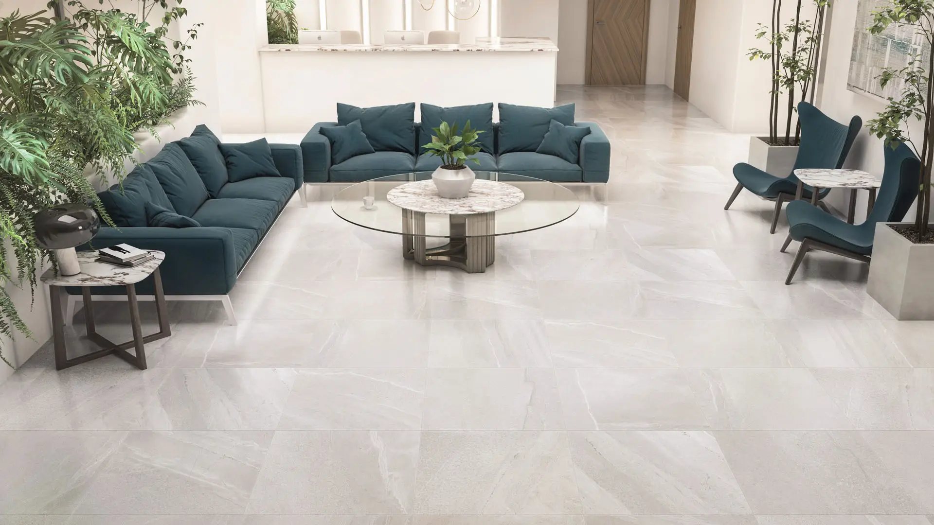 La serie se distingue por ser una piedra intensa de alta variación grafica y color homogéneo, en color Avorio (crema) en un nuevo acabado Satinado
