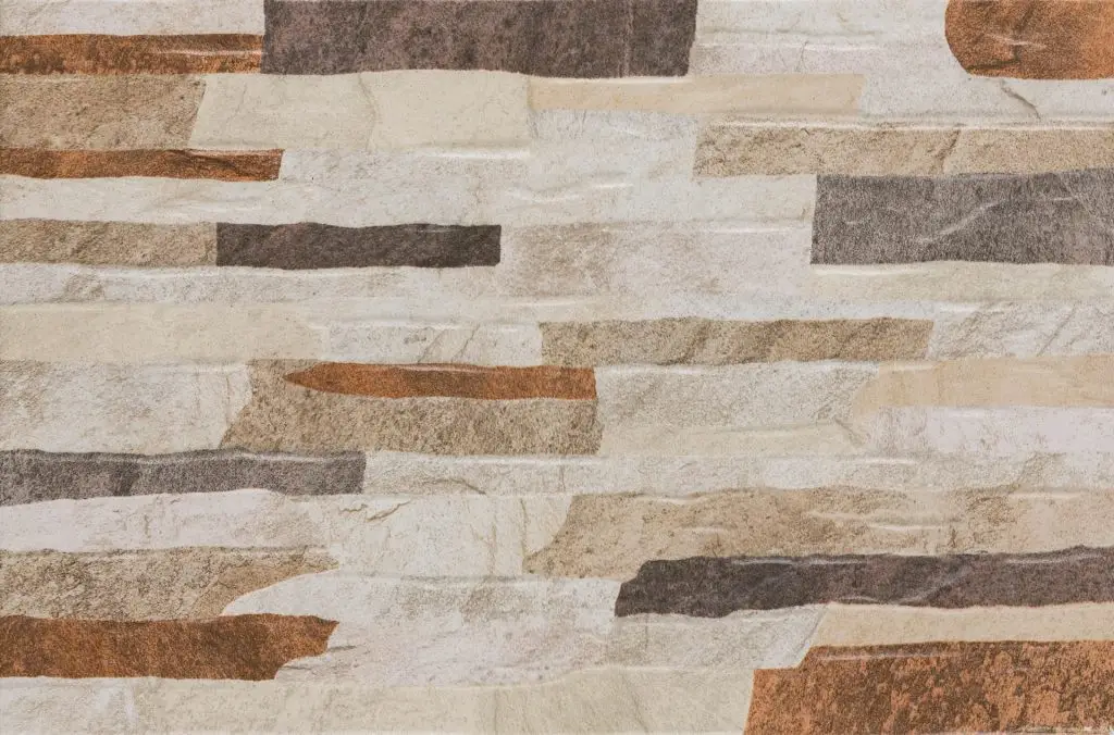 Muro Cerámico Esmaltado Acabado Mate; Diseño Tipo Fachada Aplicación en Muro Interior ó Exterior Residencial Instalación recomendada con un desfase entre piezas de 25% del largo de la pieza.(Formato 30×45)