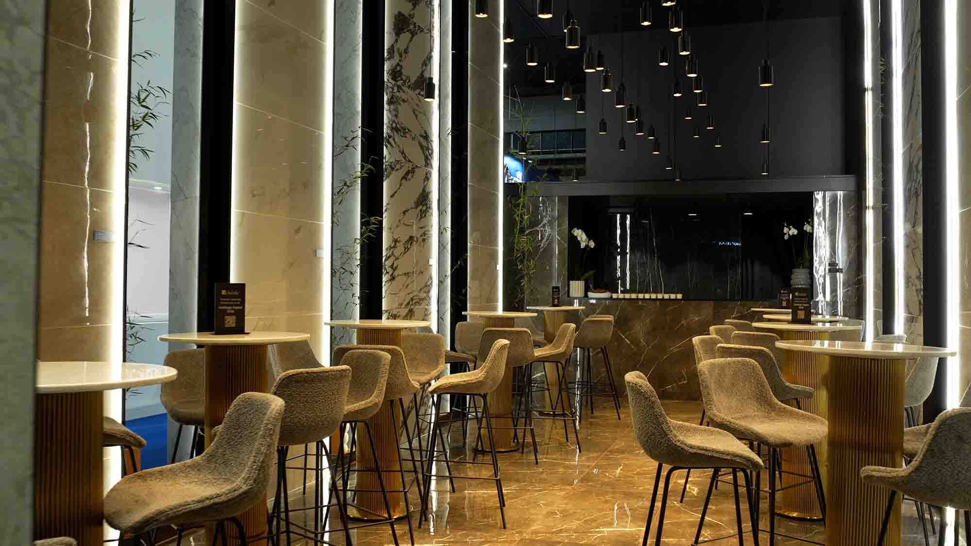 El stand, desarrollado junto a Broissin Arquitectos, se concibió como un ejercicio de interiorismo aplicado, donde cada decisión: desde la paleta hasta la circulación respondía a una misma pregunta: ¿Cómo se siente habitar nuestros productos?